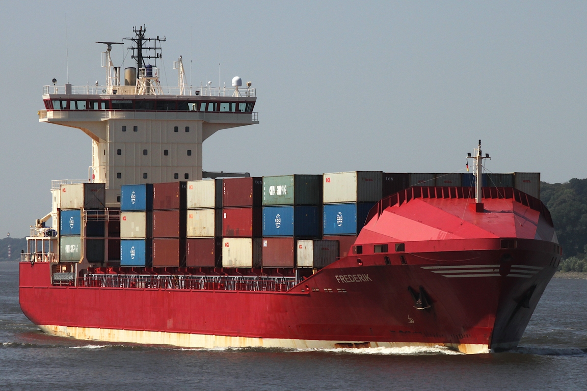 Containerfrachtschiff FREDERIK (IMO 9328637); Datum: 13.08.2025; Aufnahmeort: Elbe/Hafen ...