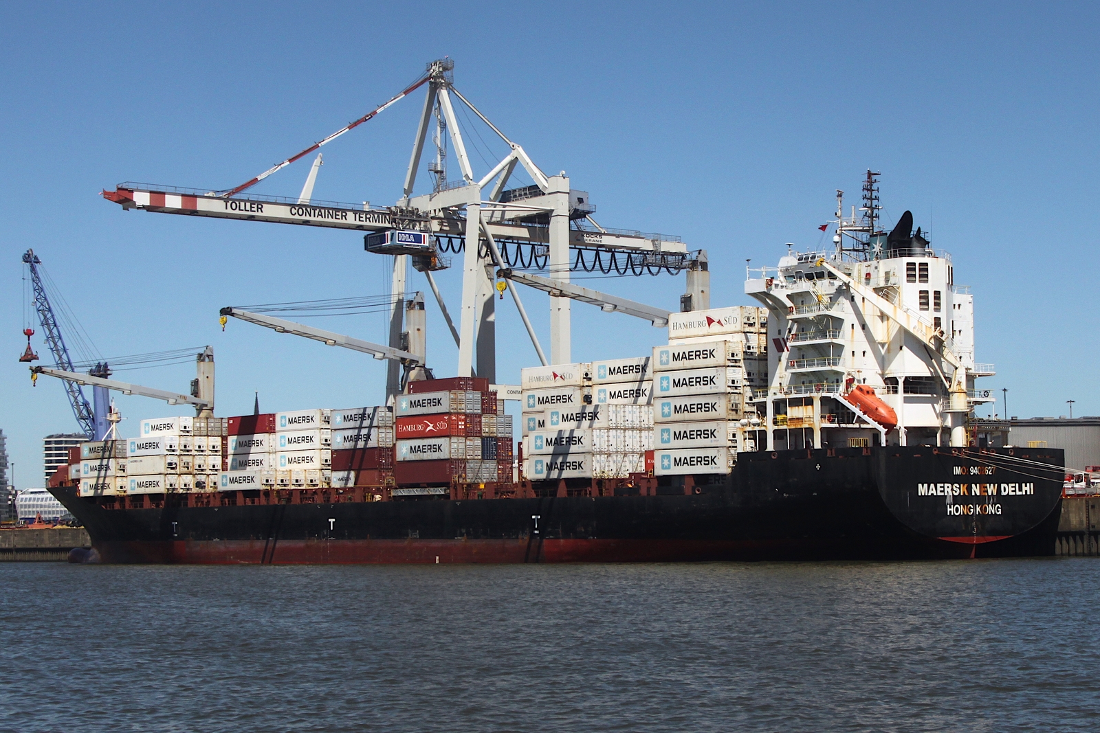 Containerfrachtschiff MAERSK NEW DELHI (IMO 9402627); Eigner/Betreiber: Maersk; ...