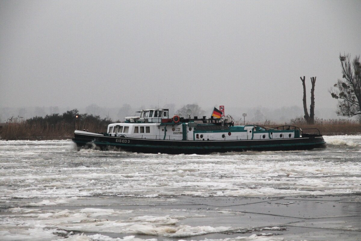 Der Eisbrecher Eised3 Ex EB. Oder von der EDLine aus Berlin im Einsatz beim Eisaufbruch auf der Oder am 14.01.2026 zu Berg.foto Eisbrecher-archiv Mineif Ralf Peter Mineif
