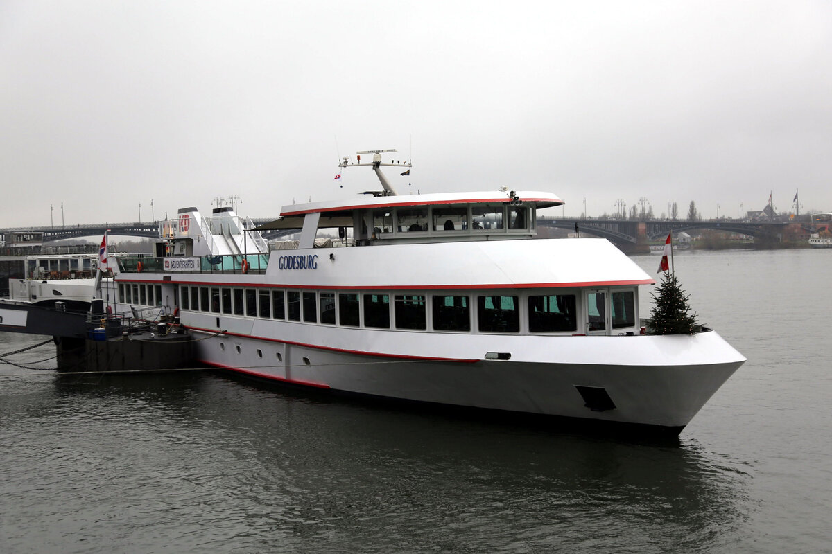 Das Fahrgastschiff GODESBURG der Köln-Düsseldorfer Rheinschifffahrt lag am 13.12.2025 am Rheinufer in Mainz.
