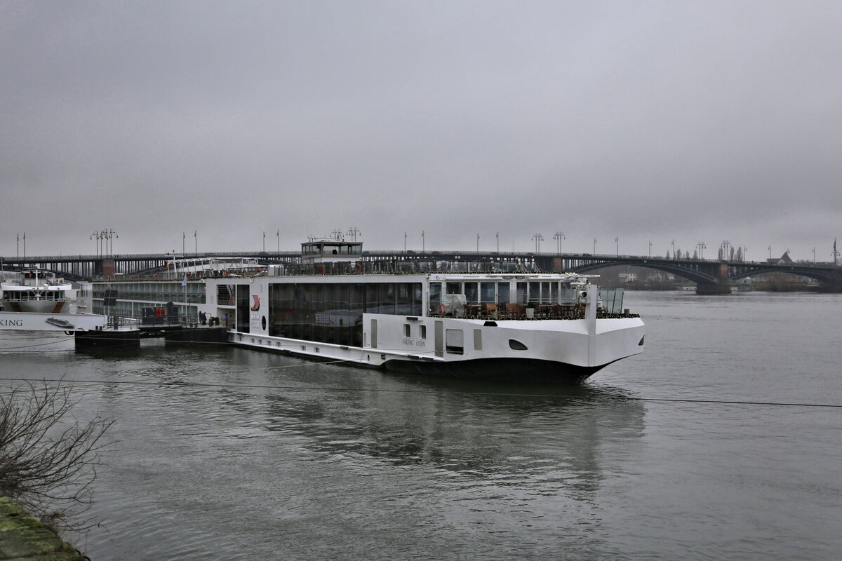 Das Hotel Fahrgastschiff VIKING ODIN lag am 13.12.2025 am Rheinufer in Mainz.