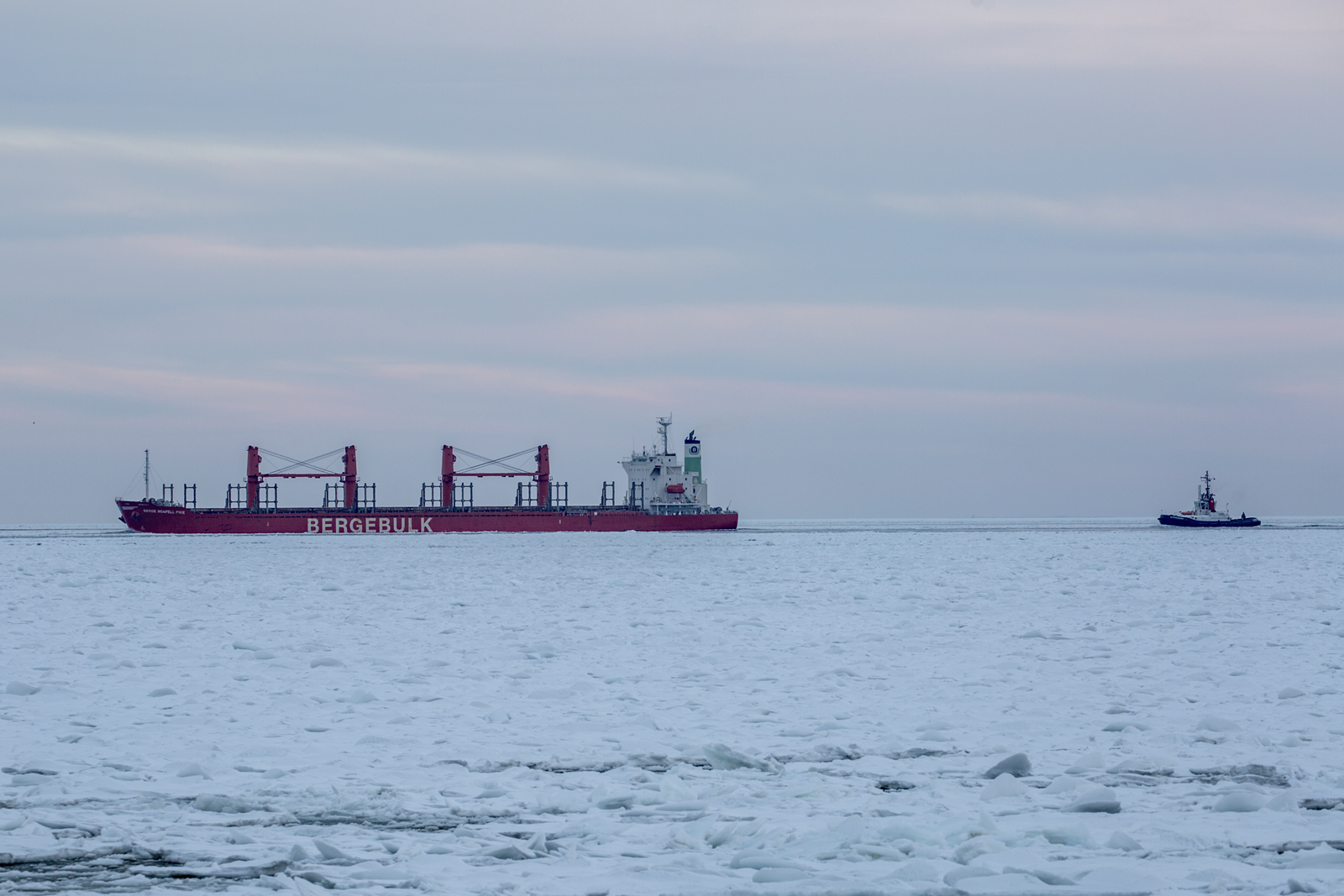Zollboot HIDDENSEE und Schlepper VB BREMEN FIGHTER (IMO 9321287) am frühen Abend vor Sassnitz. - 21.11.2025