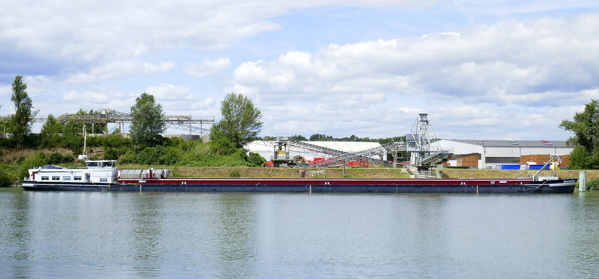 IJSVOGEL; GMS; ENI 02318773, BJ 1963; L 70 m; B 7,25 m; 902 t, Bauwerft: T. van Duijvendijk, Lekkerkerk, Eigner: Booij Tankscheepvaart BV in Hardingxveld, ex Namen Argo / Jozina / Evident; zu Berg auf der Maas in Lüttich. 10.2025 De Rond Hans und Jeanny