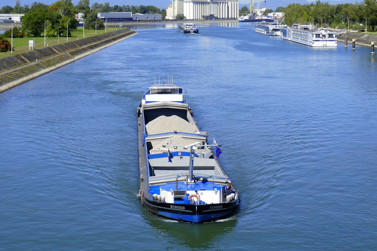 Das Binnenfrachtschiff Niedersachsen 22 am 30.05.10 auf der Elbe vor dem Rüschpark Hamburg Finkenwerder.