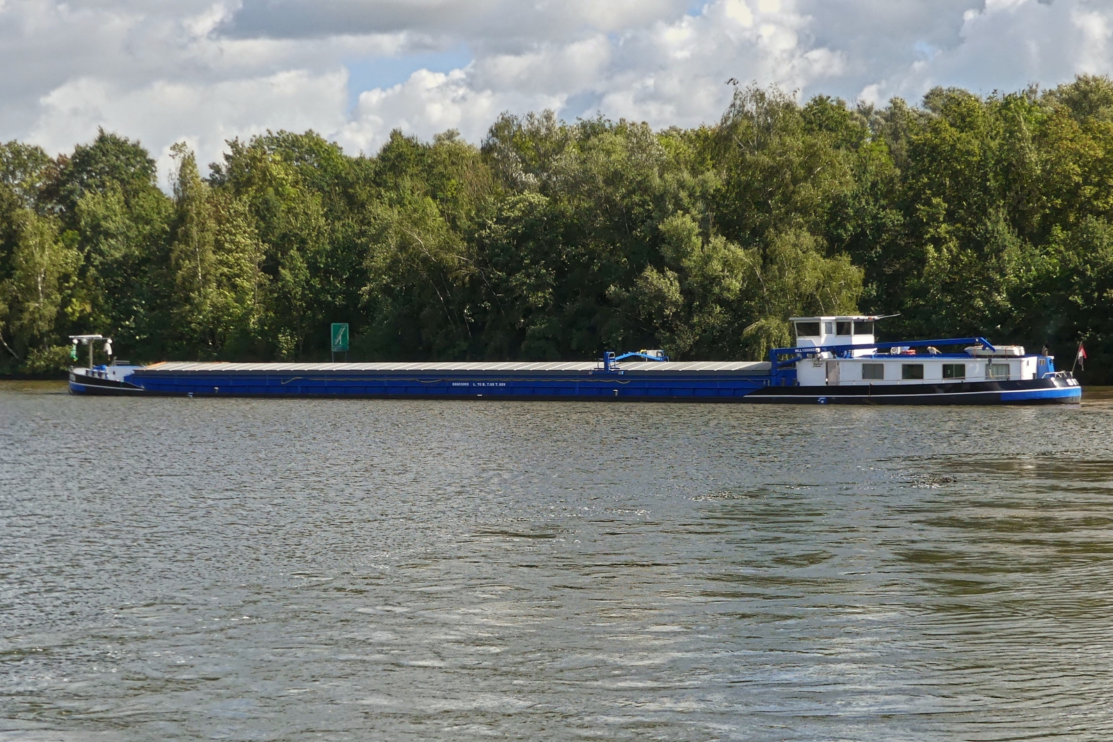 MS Sabine , ..017930 ? , am 14.03.2006 im MLK bei Lohnde / Seelze mit Fahrtrichtung H. Der MLK verläuft Backbord unter der Eisenbahnbrücke weiter. Geradeaus verläuft der Zweigkanal Ri. H-Limmer / Linden.