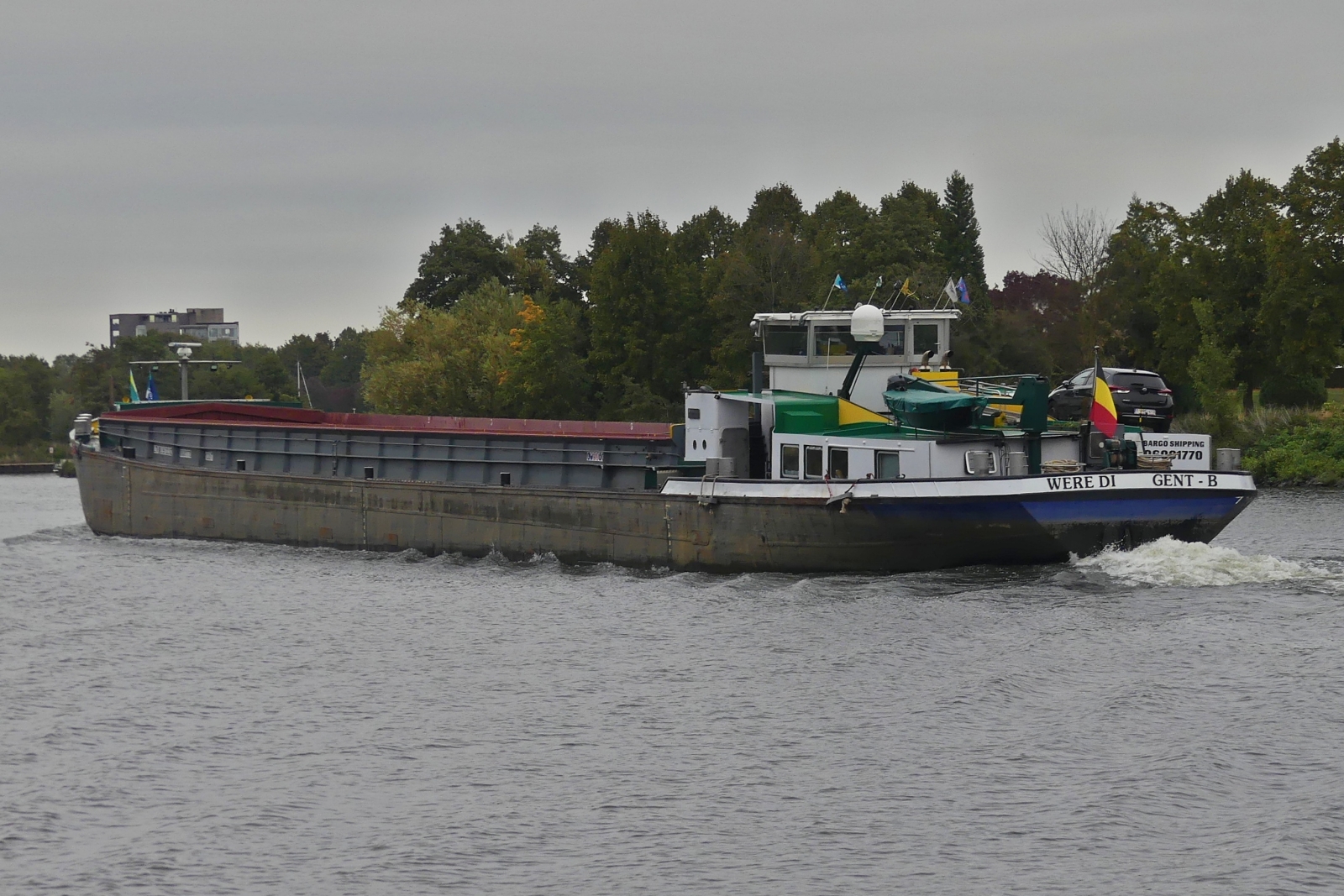 GMS Westerland kommt als 1. Binnenschiff im Jahr 2013 durch den ELK nach Lübeck-Krummesse zum Rautenberg-Silo... Aufgenommen am 03.01.2013