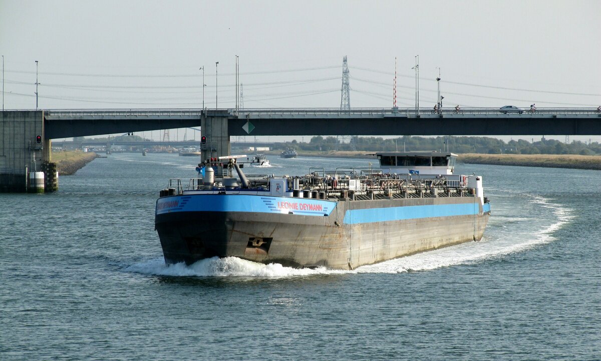 TMS LEONIE DEYMANN (ENI 04804360 , 110 x 11,4m) befuhr am 14.08.2025 den Kanal durch Zuid-Beveland / Niederlande Richtung Oosterschelde. In Sichtweite ist der Verkeerspost Wemeldinge.