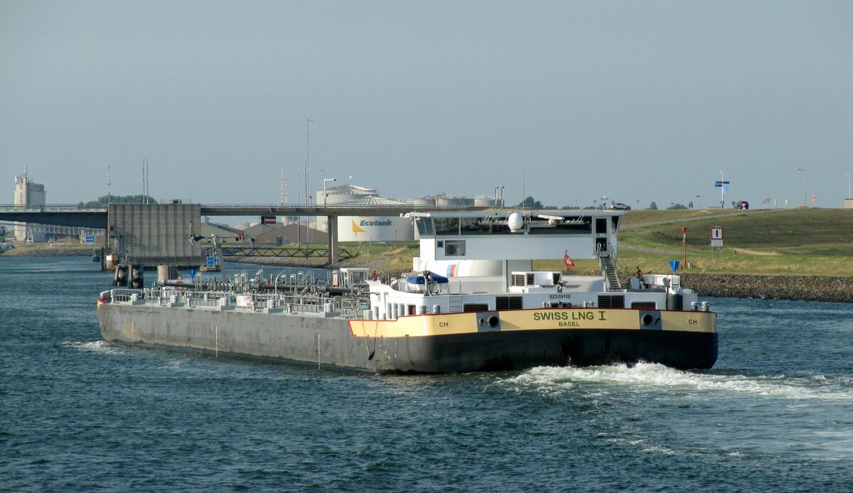 TMS SWISS LNG I (ENI 02339110 , 135 x 18m) befuhr am 14.08.2025 den Kanal durch Zuid-Beveland zw. der Schleuse Hansweert und der Oosterschelde.