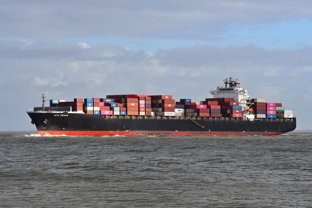 XIN WEI HAI , Containerschiff , IMO 9312573 , Baujahr 2006 , 4250 TEU , 262.23 x 32.3 m , Cuxhaven - Alte Liebe , 07.04.2025 ,