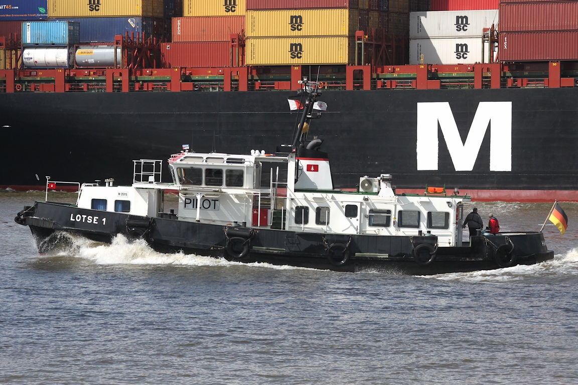 Lotsenversetzer LOTSE 1 (MMSI 211281010); Datum: 08.08.2025; Aufnahmeort: Elbe/Hafen Hamburg, Deutschland.