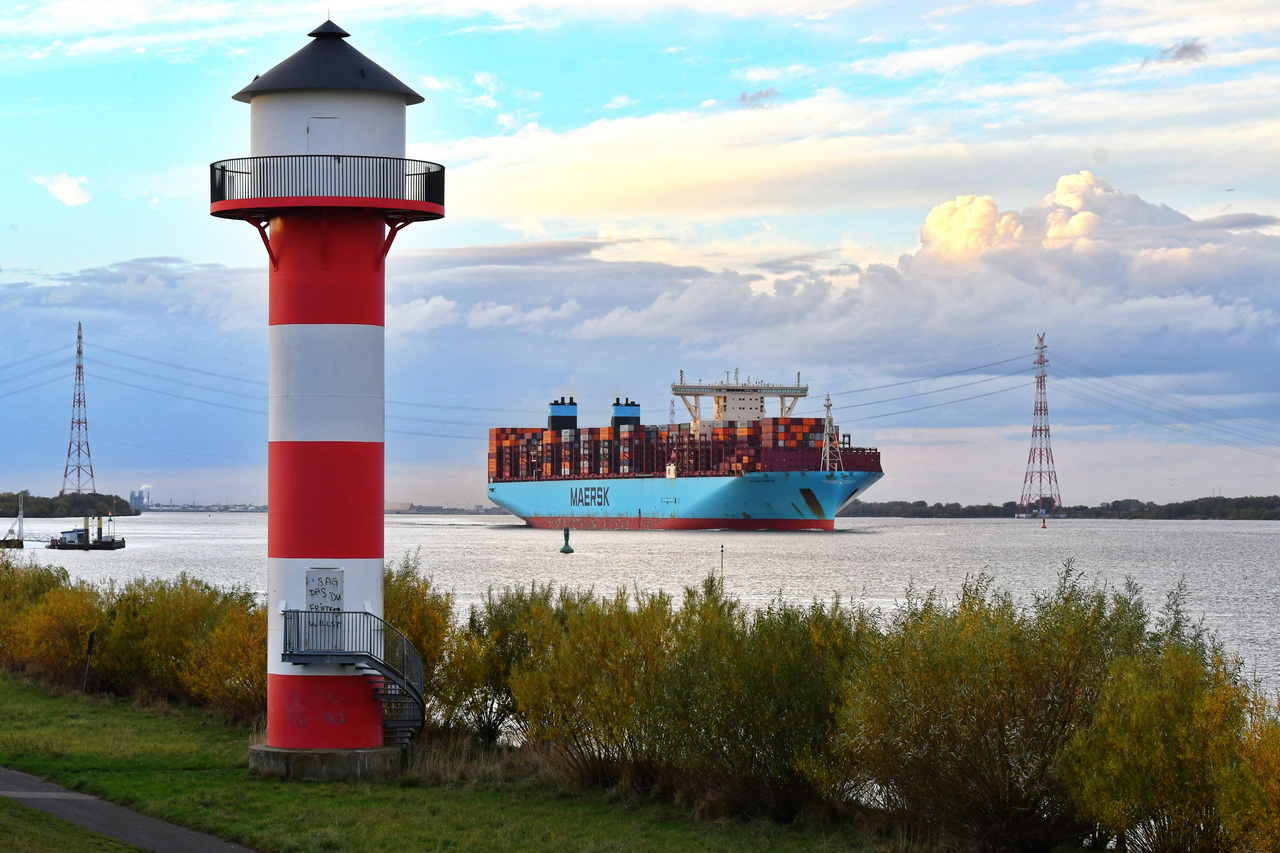 MILAN MEARSK , Containerschiff , IMO 9778820 , Baujahr 2017 , 399 x 58,6 m , 19630 TEU , Lühe - Deich , 22.10.2025