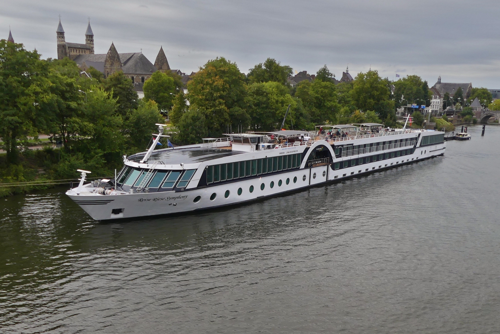 Zwei Namenlose Gütermotorschiffe, gesehen an der Kaimauer in Maastricht. 09.2025