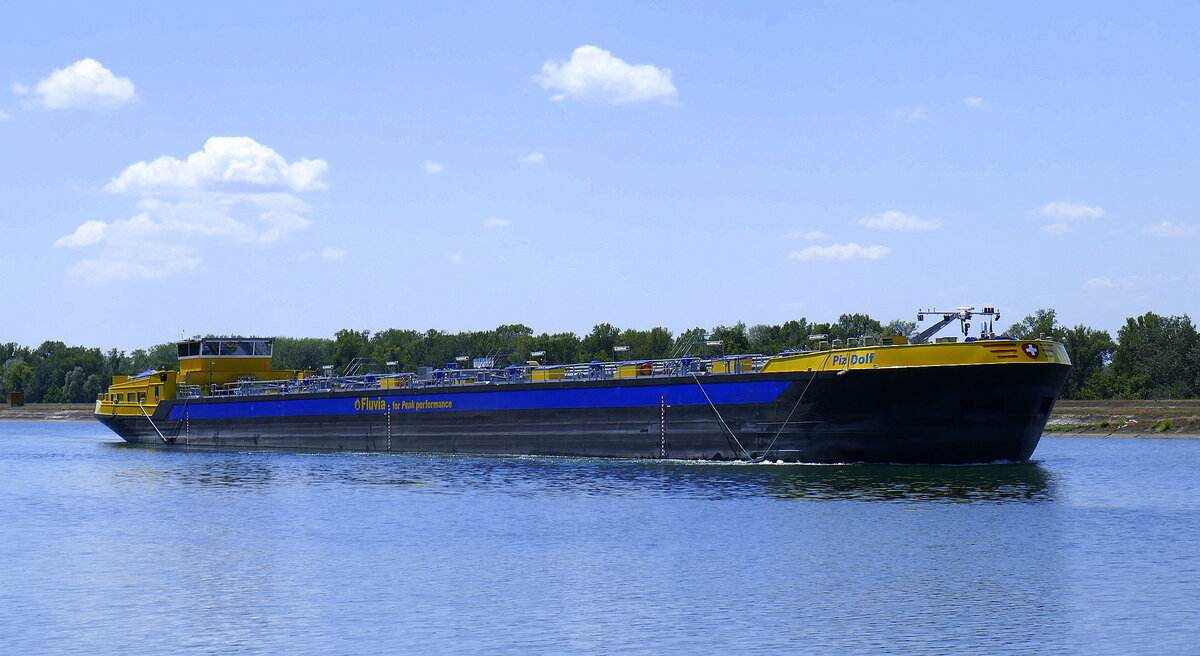 . TMS PIZ TERRI; ENI 06002619; Bj 1992; Flagge Schweiz; L 110 m; B 10,50 m; Tg 3,30 m; Tonnage 2684 t; aufgenommen auf dem Rhein nahe Köln am 11.04.2016.