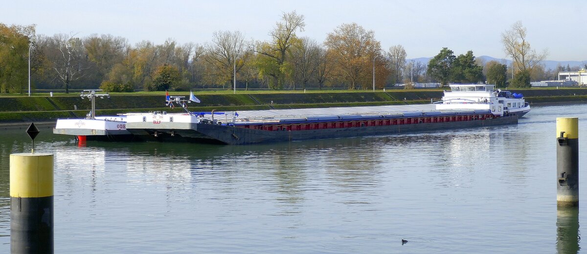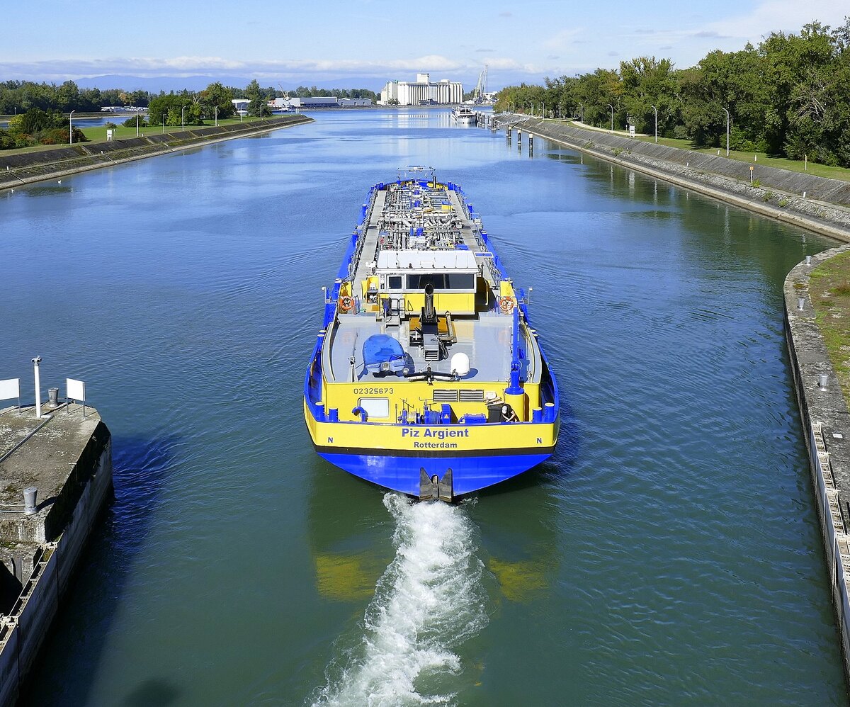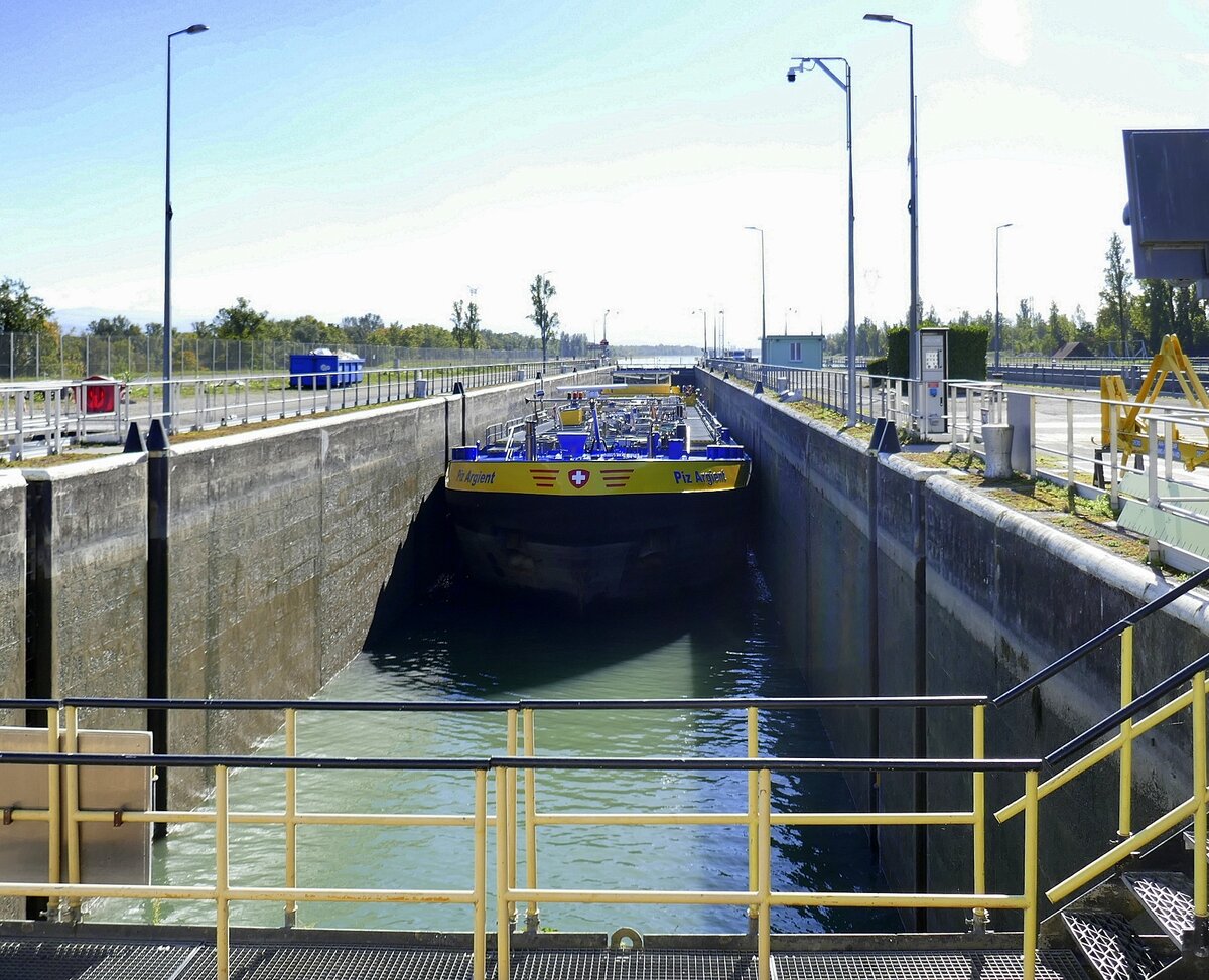 Das niederländische Binnen-Frachtschiff "Richard-V." am 18.06.2008 auf Bergfahrt im Oberwasser der Schleuse Vogelgrün. Europa-Nummer 2316105, Länge 83 m, Breite 8,40 m, 1155 Tonnen Tragfähigkeit.