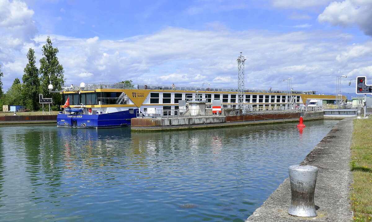Das Tankmotorschiff ESCAPE (ENI: 02326988) auf dem Rhein unterwegs. (Duisburg, April 2021)