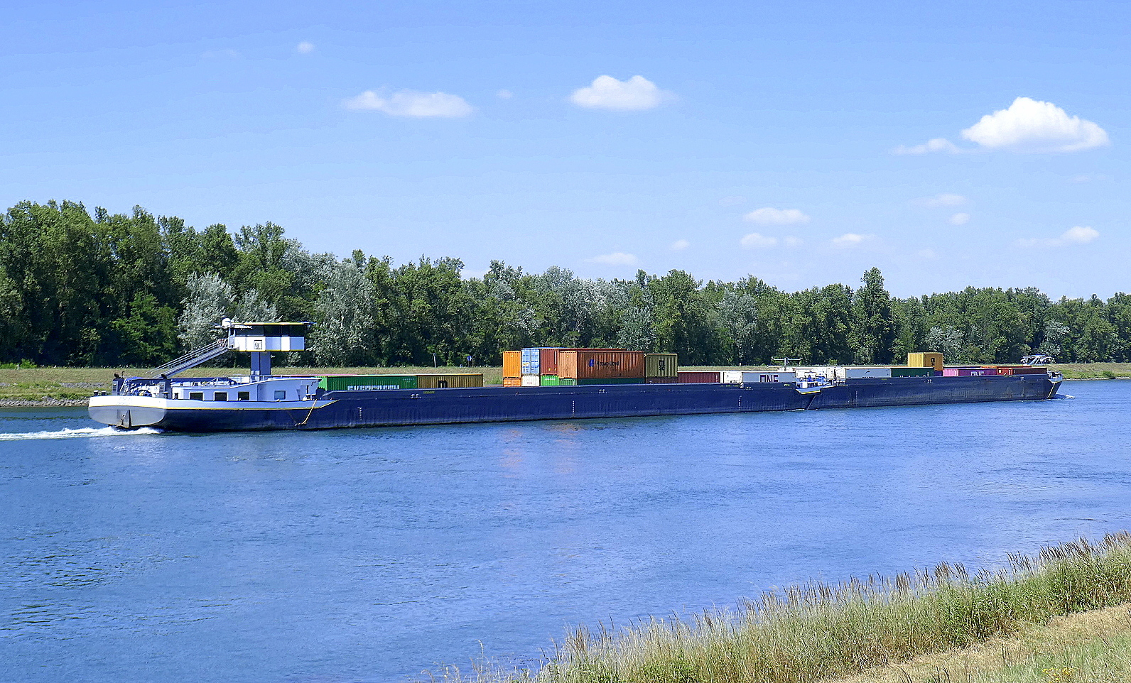 GMS ACADIA (ENI:02335205) L.110 m B.11,45 m T 2830 Flagge Niederlande auf dem Rhein zu Tal am 08.07.2022 in Xanten.