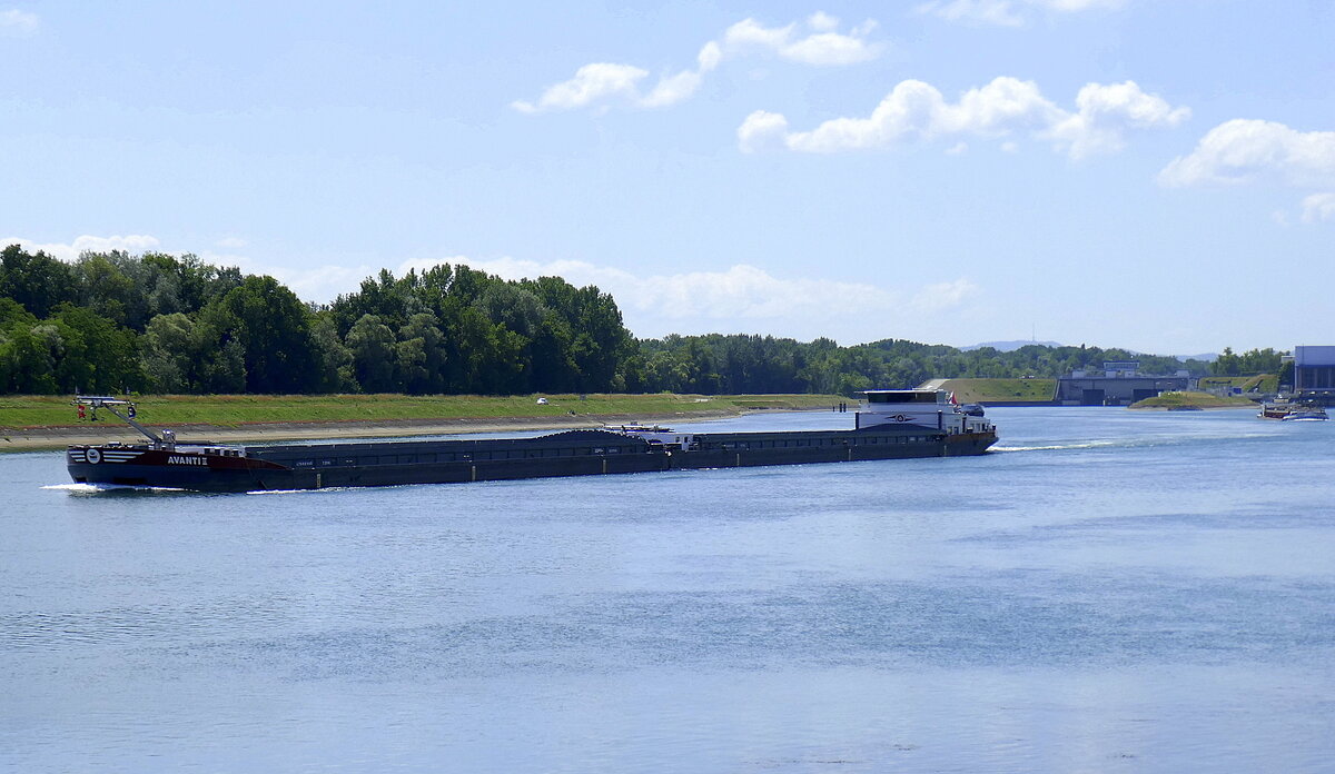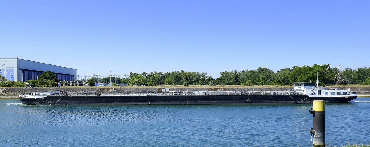 Das Gütermotorschiff SEMPER FI (ENI: 06004135) macht einen "U-Turn" auf dem Rhein. (Duisburg, August 2022)