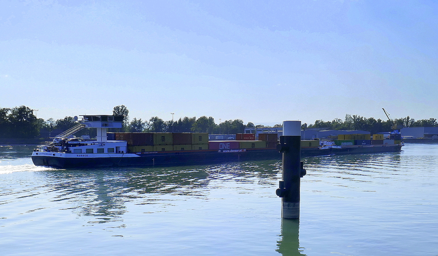 TMS RP Praag, ENI 02339998, rheinabwärts, in Warteposition vor der Staustufe Vogelgrün/Elsaß, Aug.2025