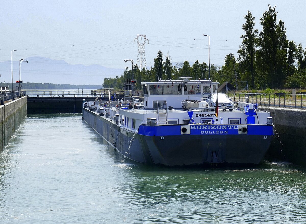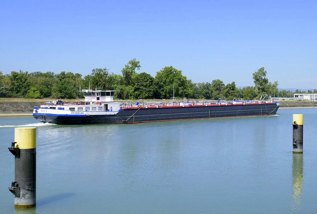 Das Gütermotorschiff INVONTES (ENI: 02329010) erreicht den Rheinpark in Duisburg. (August 2022)