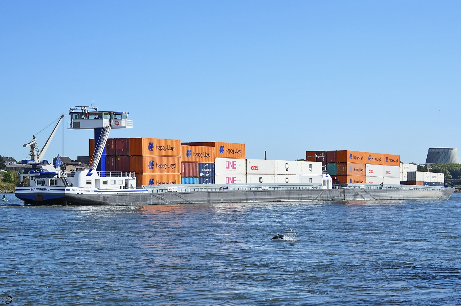 Im Bild das Gütermotorschiff JOLIBA (ENI: 04022290), welches Ende September 2025 auf dem Rhein bei Duisburg unterwegs war.