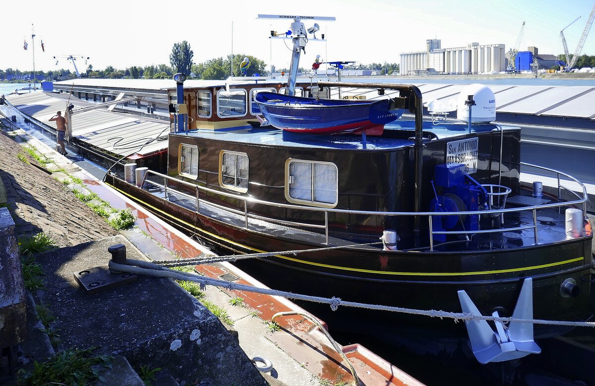 GMS San Antonio, ENI 03110096, ankert im Rheinhafen Breisach, Heckansicht, Sept.2025