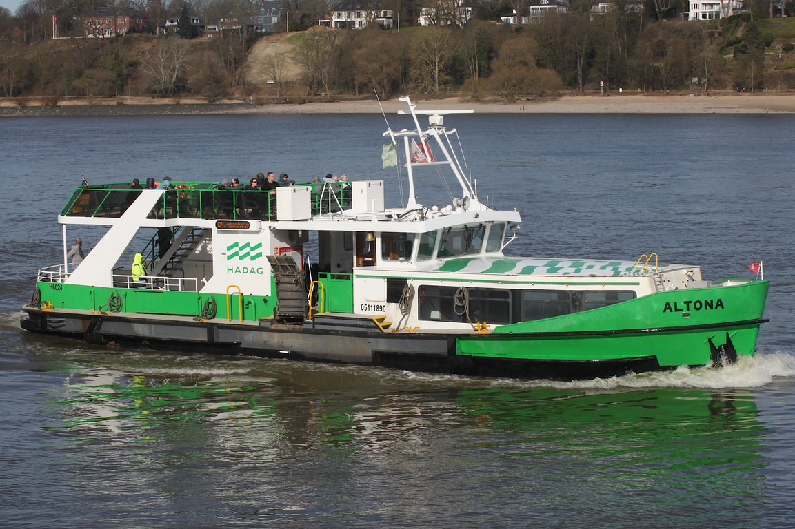 Einmann-Fährschiff Typ 2000 / HADAG / Lüa 29,97 m, B 8,06 m, Tg 1,5 m / 2 Diesel, 2 Ruder-Propeller, 12 kn / 250 Pass., nach Umbau 380 Pass. / 1997 bei Grube, Oortkaten, Hamburg, Umbau 2016: jetzt Fahrgäste 380, Bestuhlung auf dem Oberdeck geändert (Tische gegen Querbestuhlung), vergrößerter Fahrradabstellplatz im Hauptdeck /