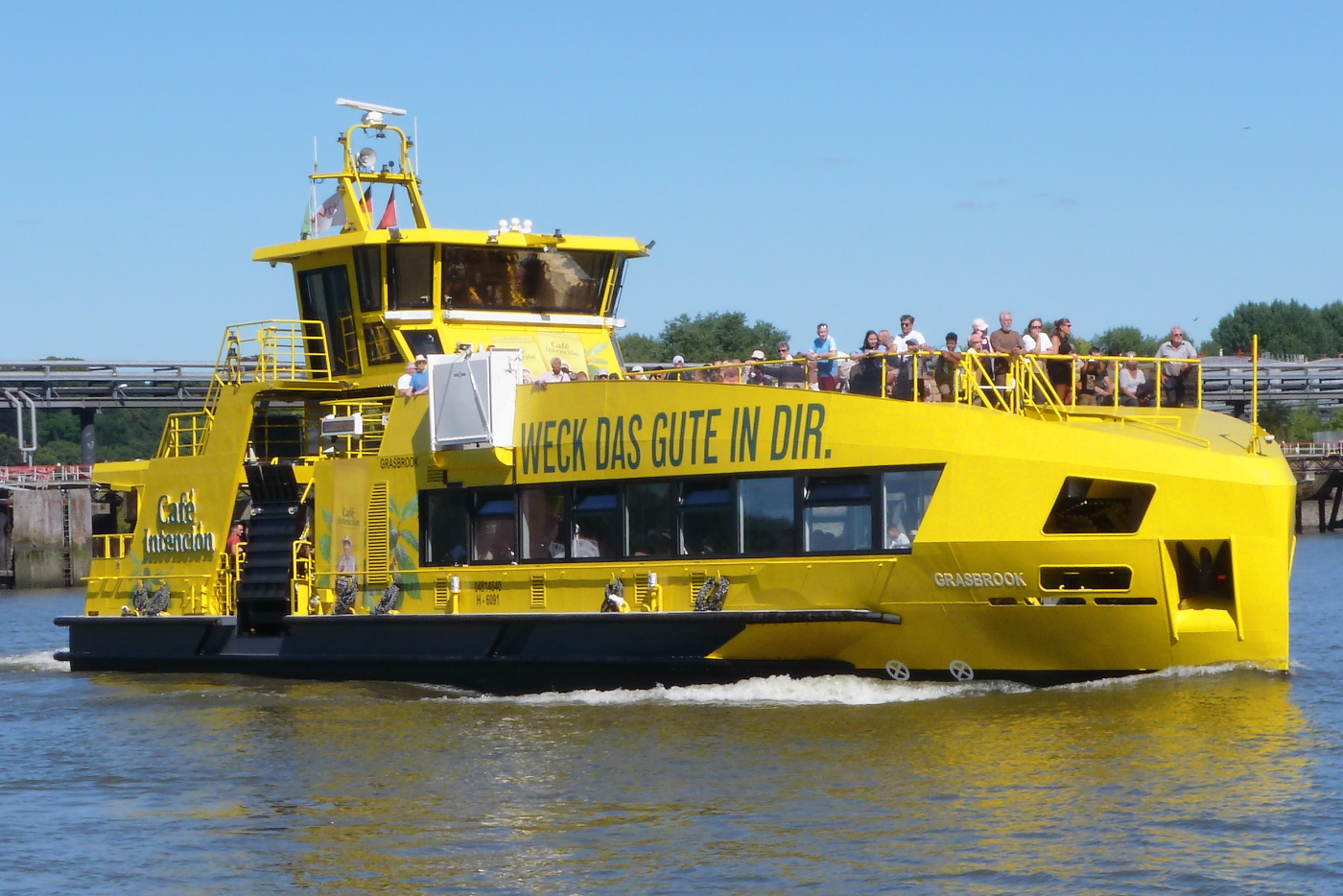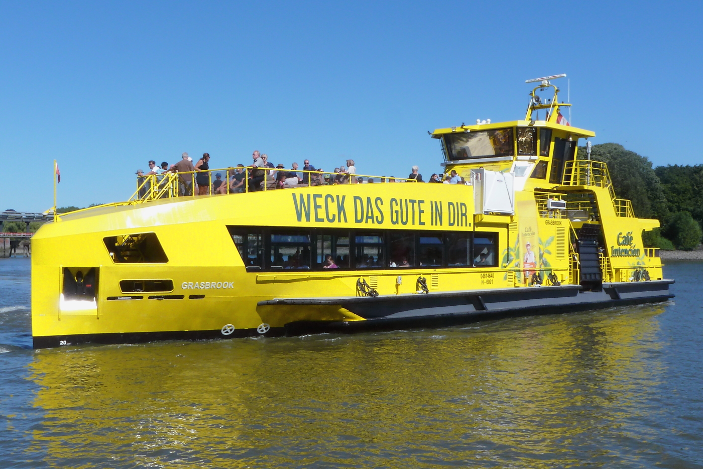 Hafenfährschiff HADAG-Typ 2000 / Lüa 29,94 m, B 8,15 m, Tg 1,7 m / 2 Diesel, Volvo-Penta D12-450, ges. 662 kW, 2 Ruderpropeller, 12 kn, 1 Querstrahlruder / 250 Pass. / gebaut 2005 bei SSB, Oortkaten /