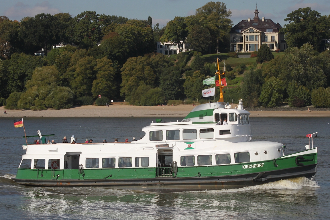 Einmann-Fährschiff Typ 2000 / HADAG / Lüa 29,97 m, B 8,06 m, Tg 1,5 m / 2 Diesel, Volvo-Penta D12-450, 2 Ruder-Propeller, 12 kn / 250 Pass. / gebaut 1999 bei Grube, Oortkaten, Hamburg / 02.2012 Anbau Wulstbug /