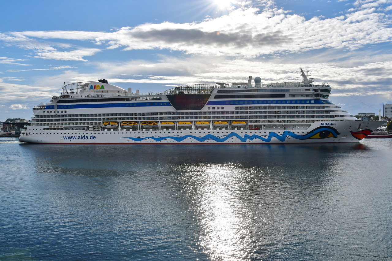 AIDAdiva , Kreuzfahrtschiff , IMO 9334856 , Baujahr 2007 , 251,89 x 37,6 m , 31.10.2025 , Rostock-Warnemünde ,