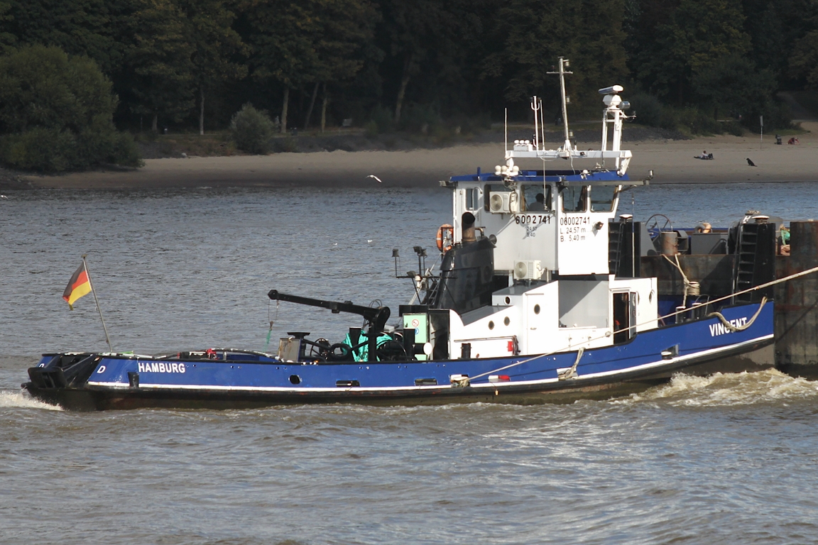 Der Schlepper VB ARGUS (IMO: 9600762) machte Anfang Mai 2023 vor der Hafenpromenade in Travemünde einen U-Turn.