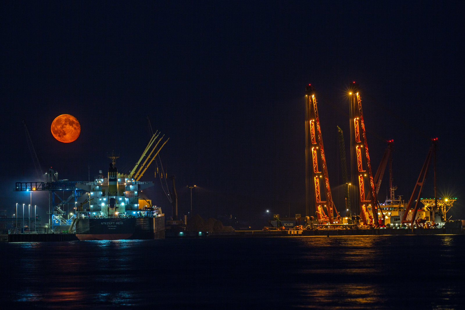 Aufgehender Mond über den Hafen von Sassnitz Mukran. - 07.11.2025