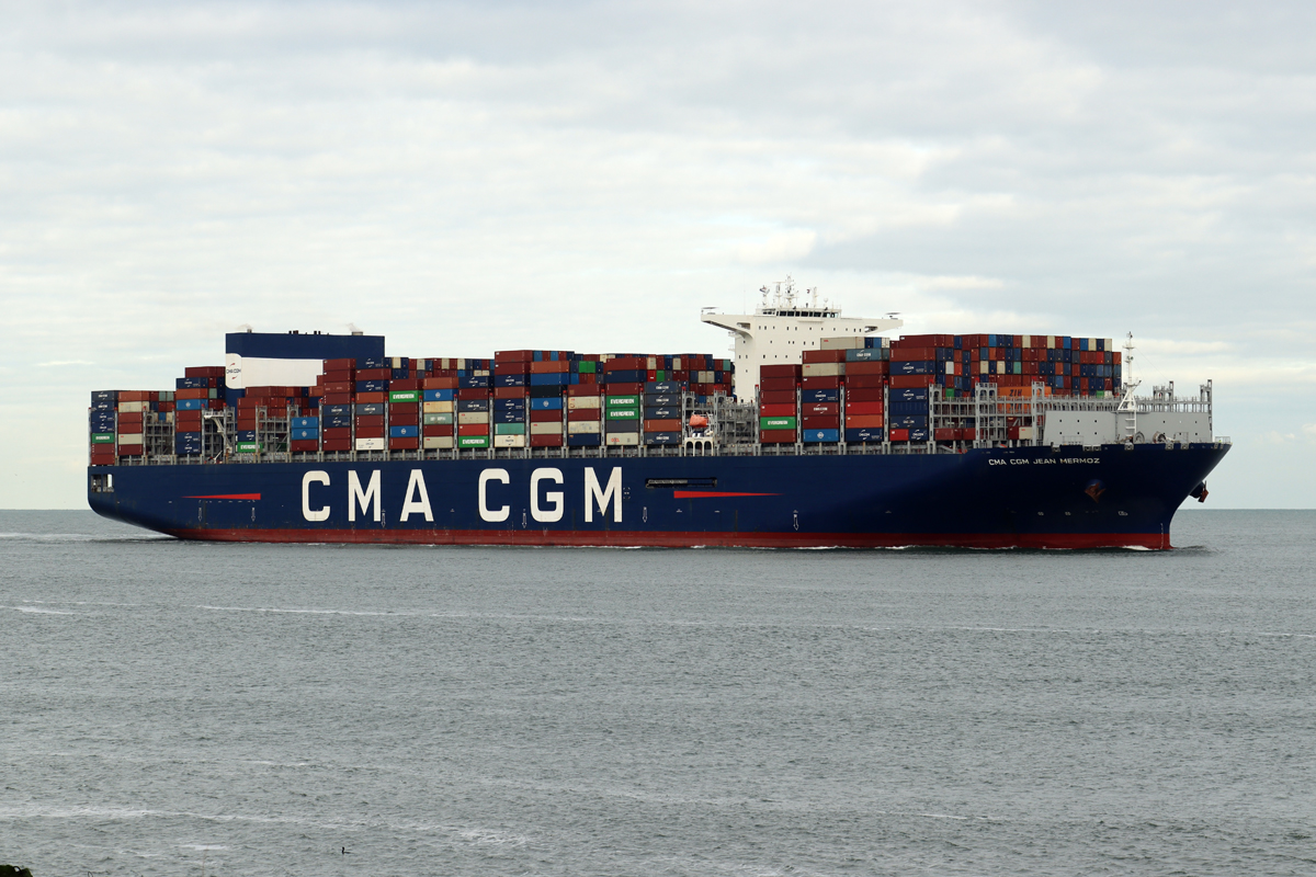 CMA CGM LAVENDER IMO 9314973 am 28.8.2010, Hamburg einlaufend, im Parkhafen zum Liegeplatz Burchardkai unter Assistenz von P&A-Schlepper "PETER".
