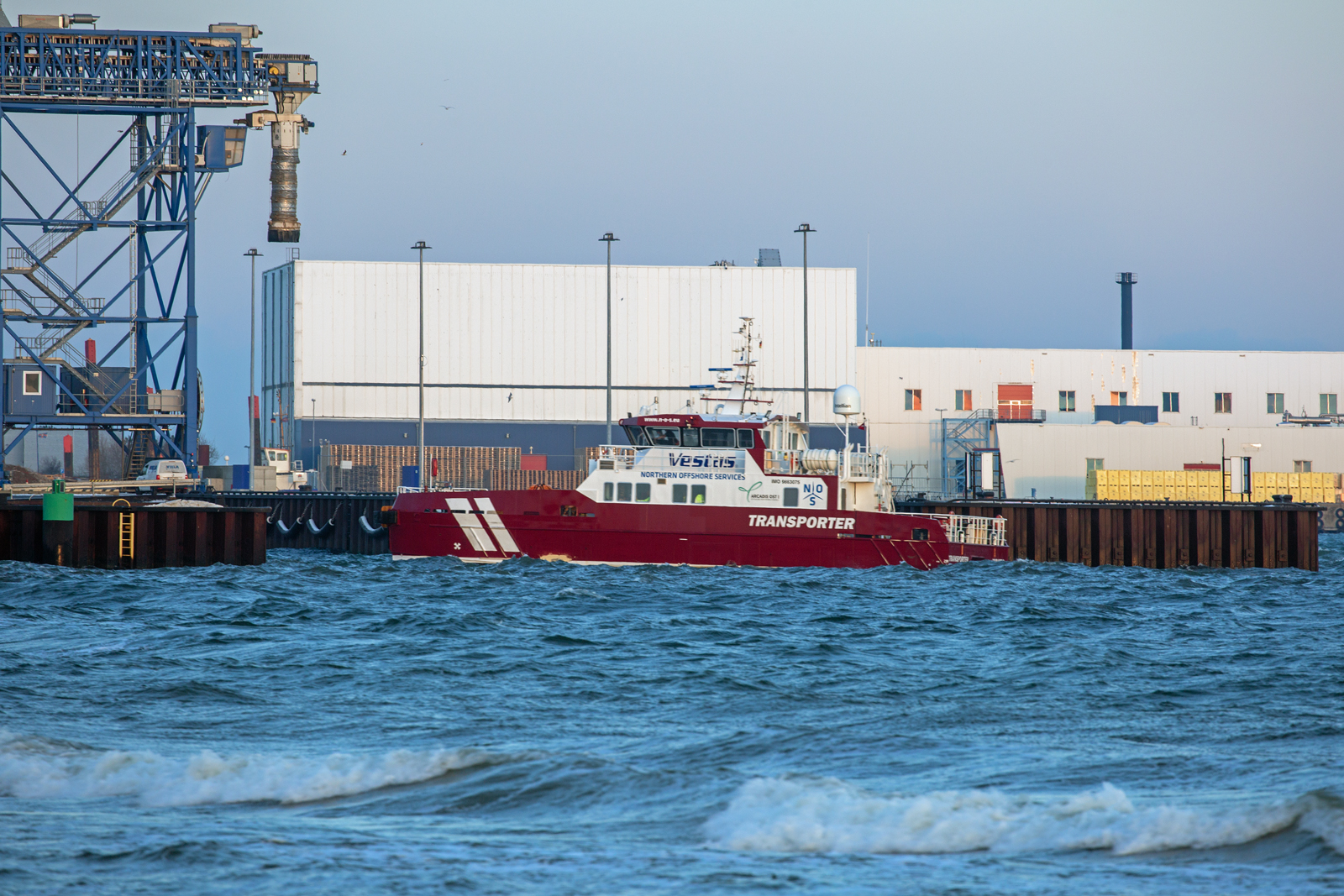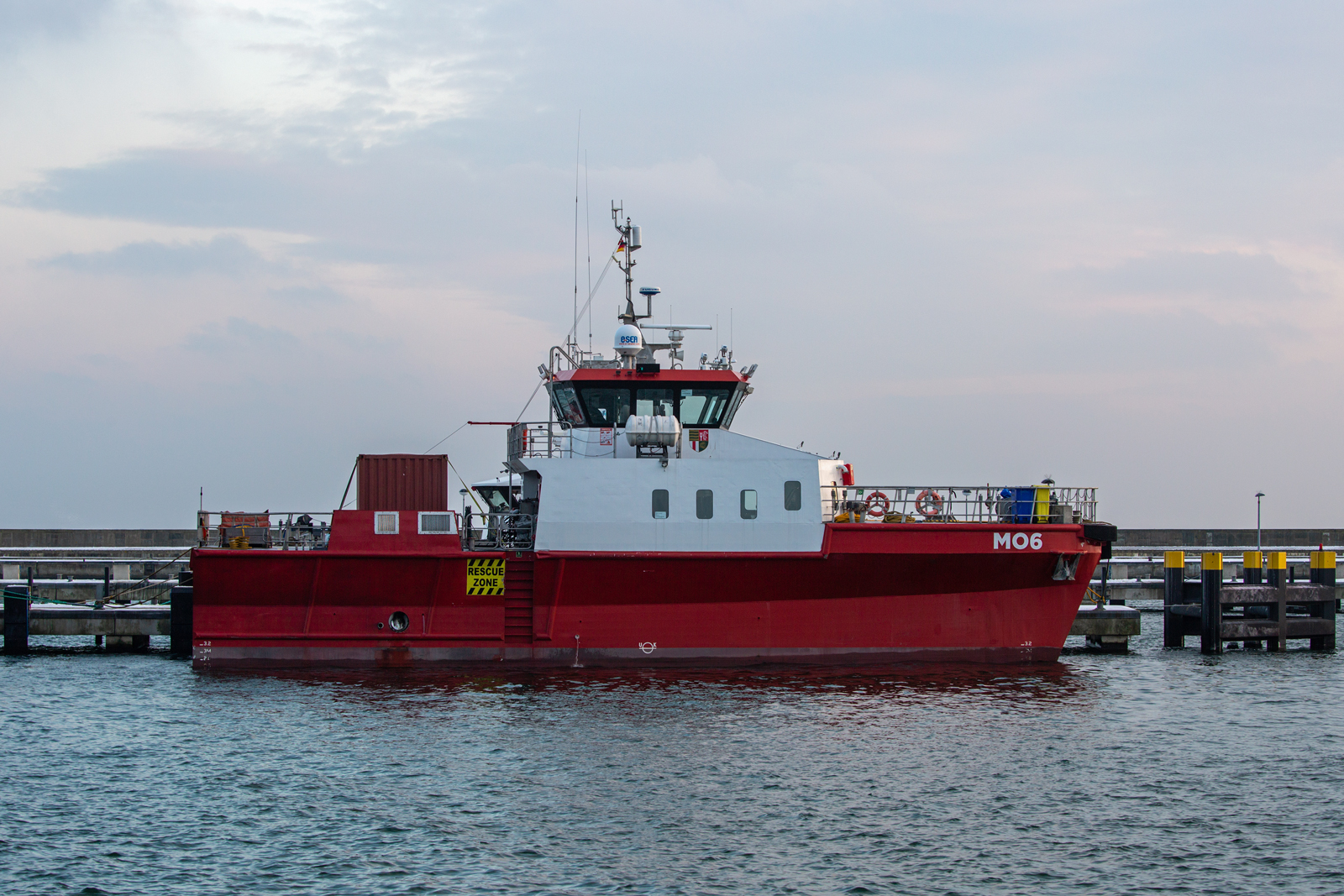 Offshore Errichterschiff MPI ENTERPRISE (IMO 9578244) liegend im Hafen von Sassnitz Mukran, im Hintergrund links MPI RESOLUTION (IMO 9260134). - 09.05.2019