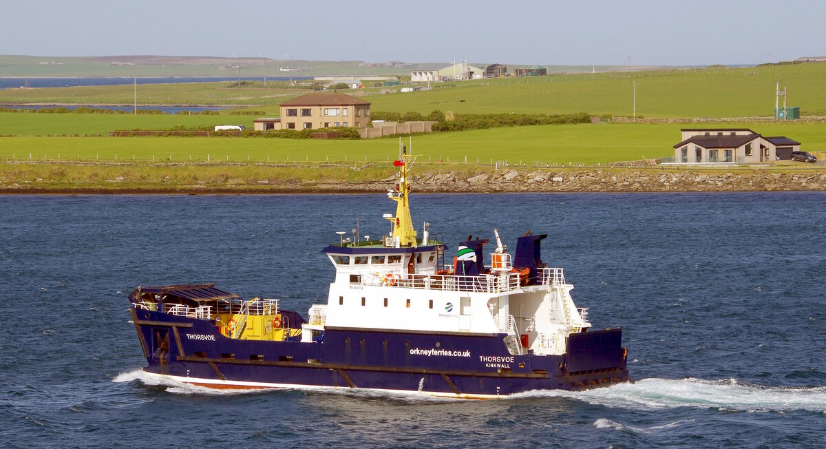Die 35m lange Fähre THORSVOE (IMO:9014743) am 02.06.25 in Kirkwall.