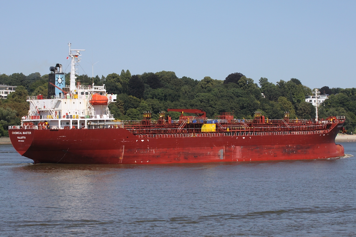 Tankschiff CHEMICAL MASTER (IMO 9558957); Datum: 13.08.2025; Aufnahmeort: Elbe/Hafen Hamburg, Deutschland.