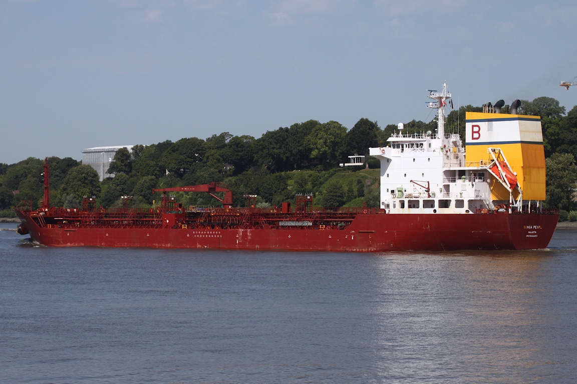Hier schippert die Seychelles Pioneer nach Hamburg, hier am Gründeich auf der Elbe zu sehen. Das Schiff ist 185 Meter lang und 28 Meter breit