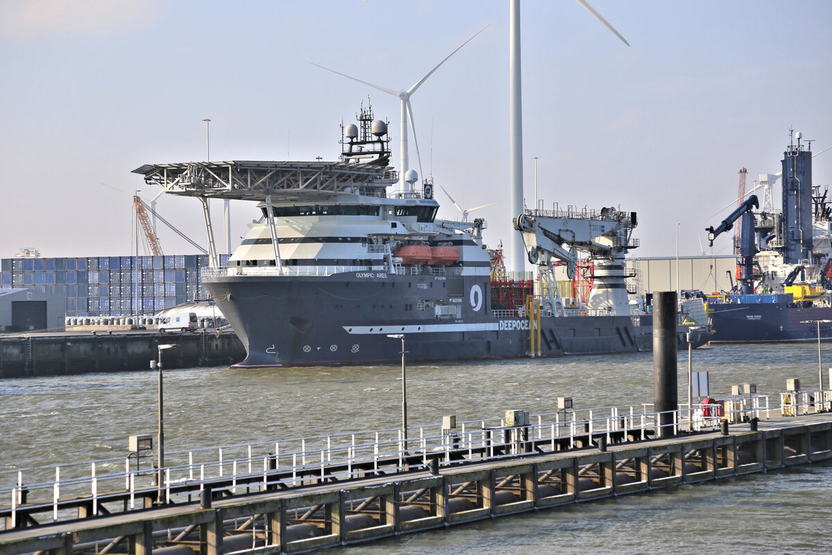 Die Olympic Ares lag am 3.2.2026 im Hafen von Eemshaven. Es handelt sich um ein Offshore Bau- und Versorgungsschiff. IMO Bezeichnung: 9665712 Gerd Hahn