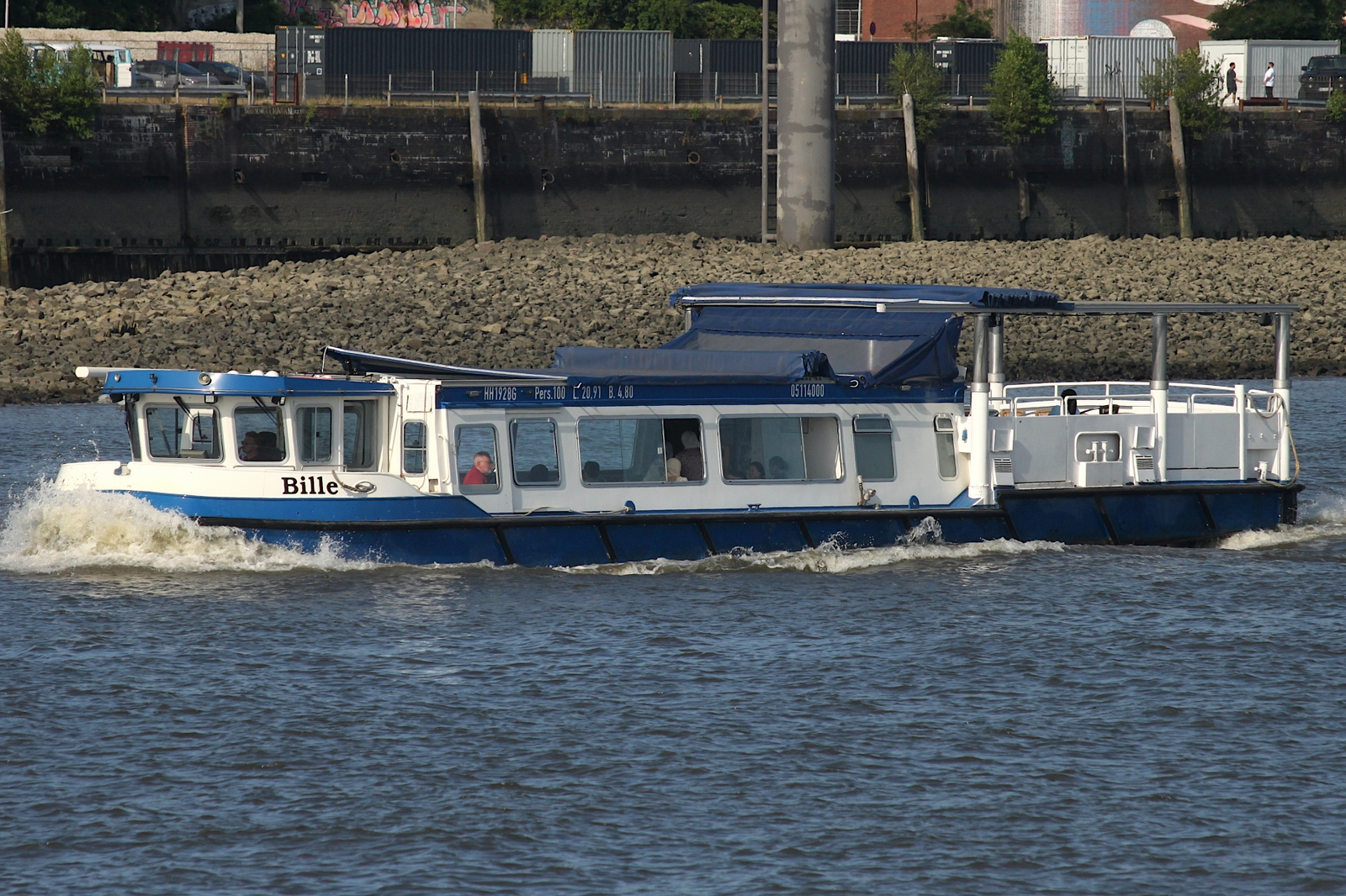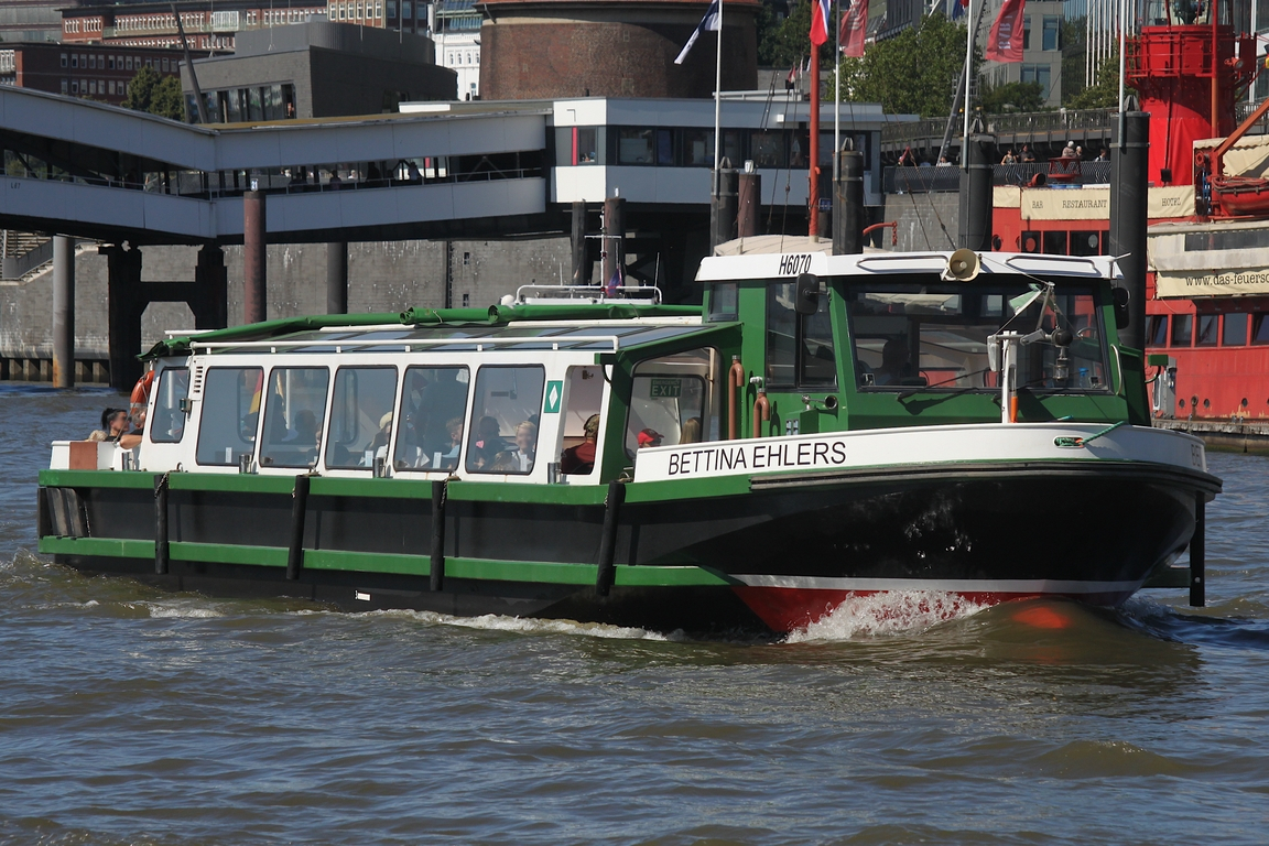 Barkasse für Hafenrundfahrt en / Lüa 22,82 m, B 5,01 m, Tg 1,66 m / 1 Diesel 160 kW, 218 PS / zugelassen für 75 Pass. / 1962 bei Francke, Berlin /
