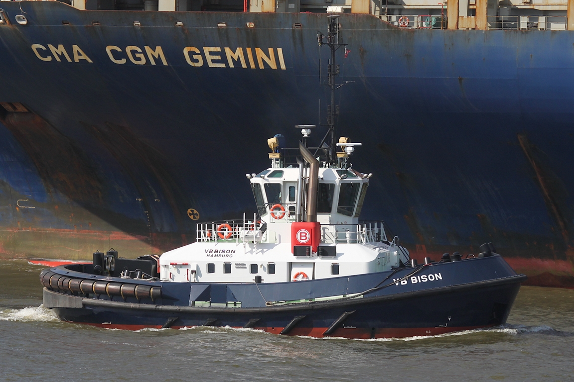 Schlepper VB MERCURY; Eigner/Betreiber: Boluda; Aufnahmeort: Elbe/Hafen Hamburg, Deutschland; Datum: 01.07.2025; Info: (IMO 9597367) Das Bild zeigt die VB MERCURY im Einsatz nahe dem Burchardkai.