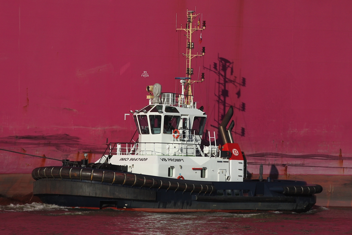 Schlepper VB SPIRIT (IMO 9597355); Eigner/Betreiber: Boluda - L&R; Datum: 19.09.2025; Aufnahmeort: Elbe/Hafen Hamburg, Deutschland. Das Bild zeigt die VB SPIRIT vor Teufelsbrück.