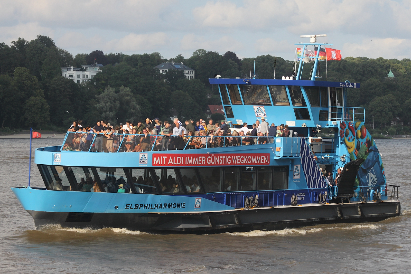 Hadag Hafenfähre ELBPHILHARMONIE (ENI 04812750) (H6078); Eigner/Betreiber: Hadag; Datum: 28.07.2025; Aufnahmeort: Elbe/Hafen Hamburg, Deutschland.