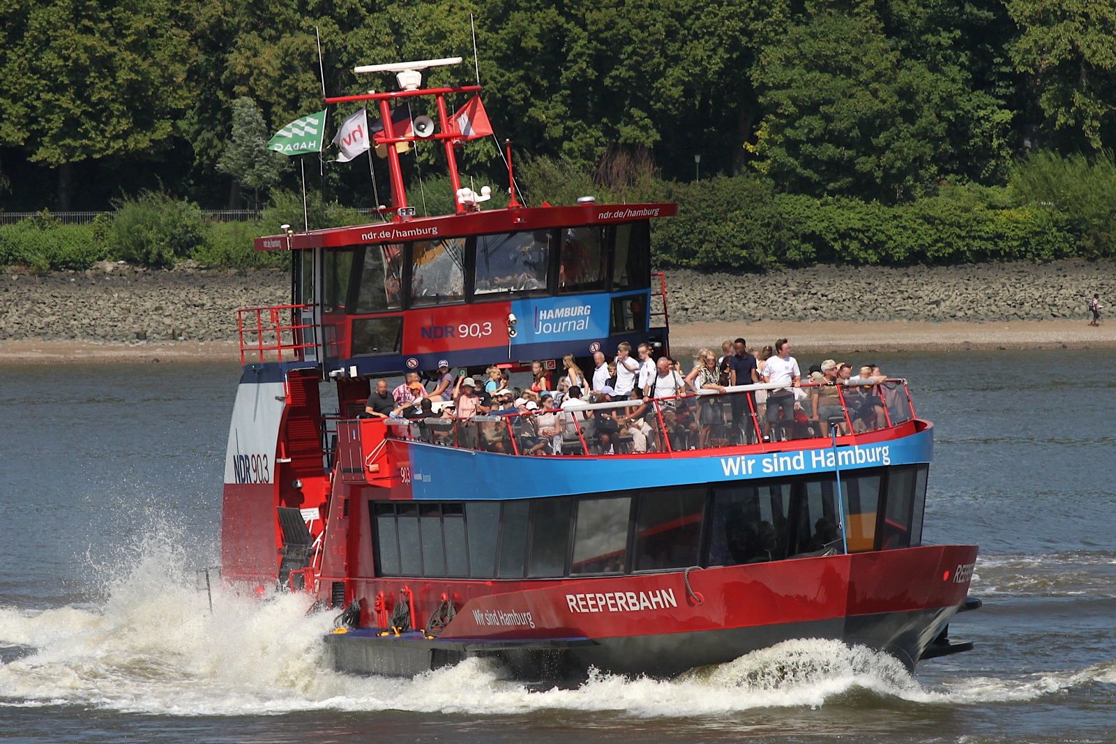 Hadag Hafenfähre REEPERBAHN (ENI 05117160); Eigner/Betreiber: Hadag; Datum: 13.08.2025; Aufnahmeort: Elbe/Hafen Hamburg, Deutschland.