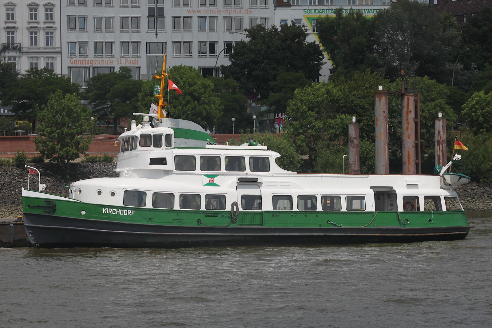 Hadag Hafenfähre KIRCHDORF (ENI 05100560); Eigner/Betreiber: Hadag; Datum: 11.06.2025; Aufnahmeort: Elbe/Hafen Hamburg, Deutschland.