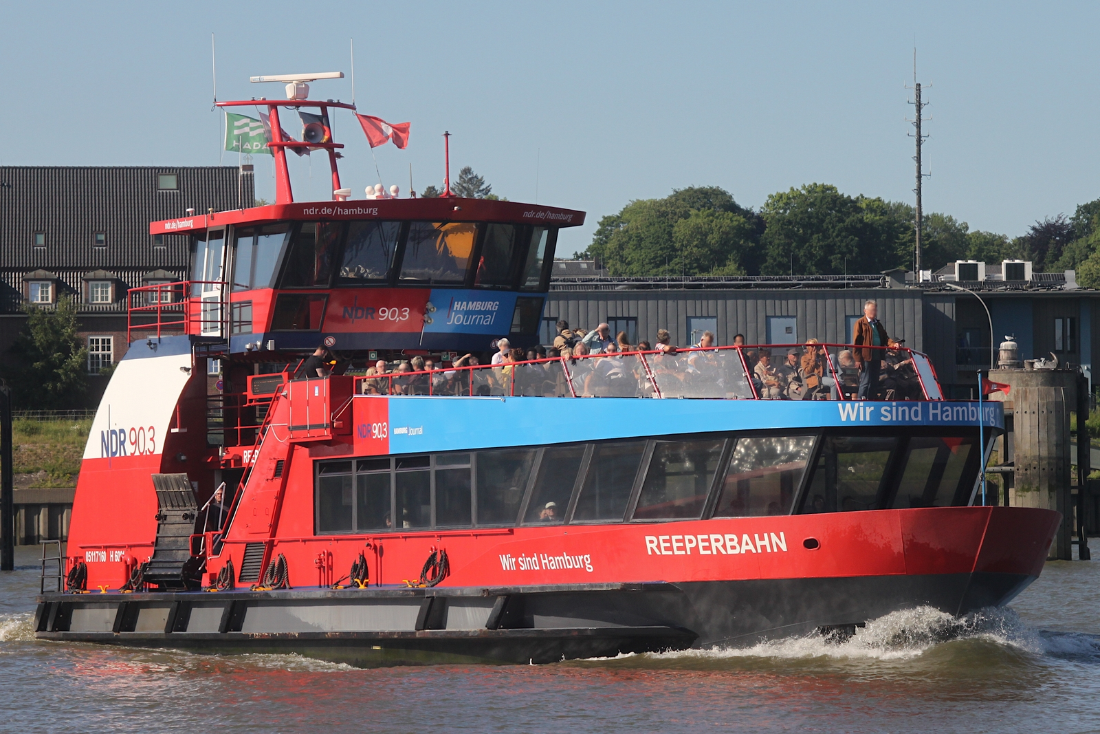 Hadag Hafenfähre REEPERBAHN (ENI 05117160); Eigner/Betreiber: Hadag; Datum: 20.05.2025; Aufnahmeort: Elbe/Hafen Hamburg, Deutschland.